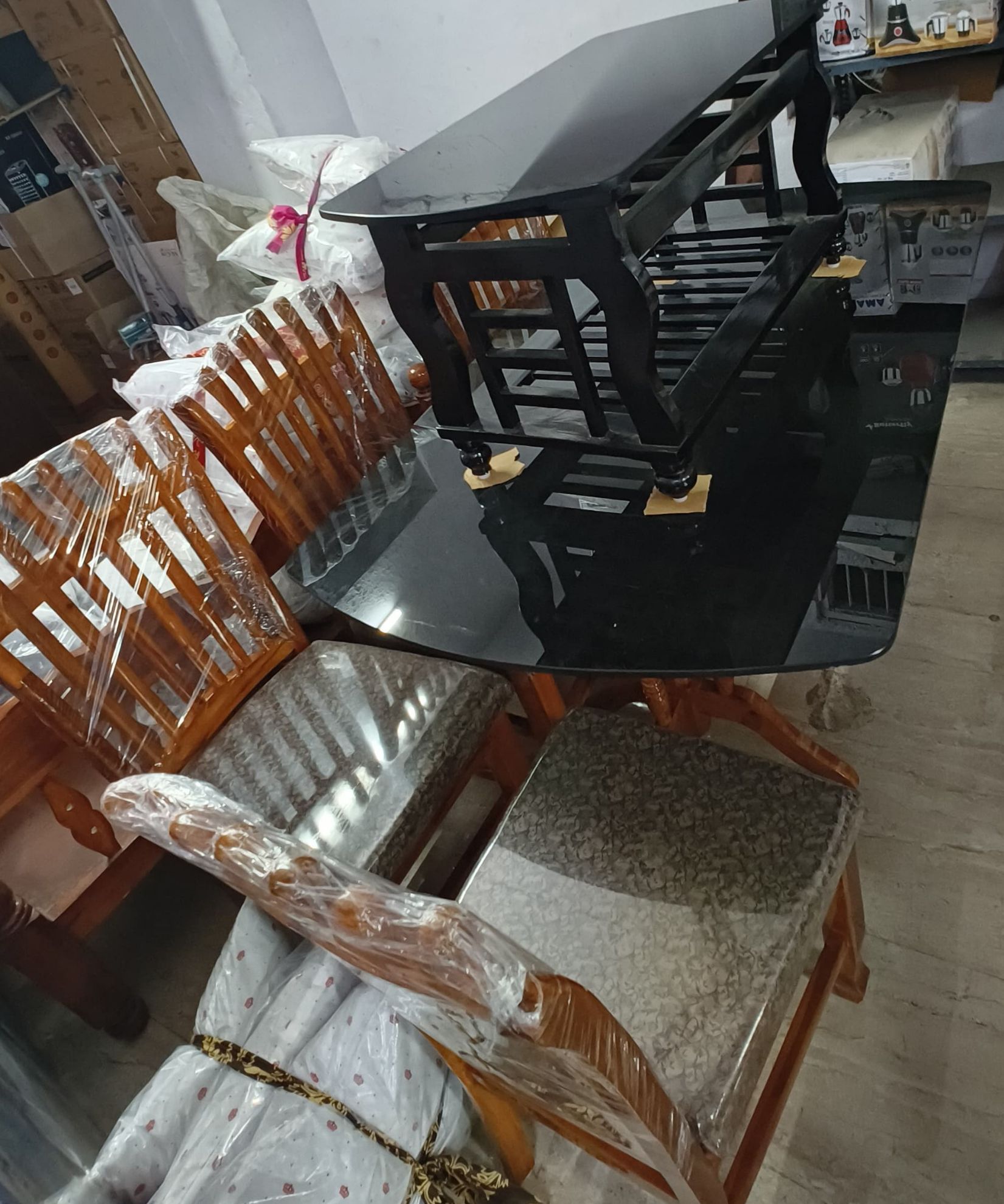 ఇంటి కోసం గ్లాస్ టాప్ ఫోర్ సీటర్ డైనింగ్ టేబుల్ సెట్.