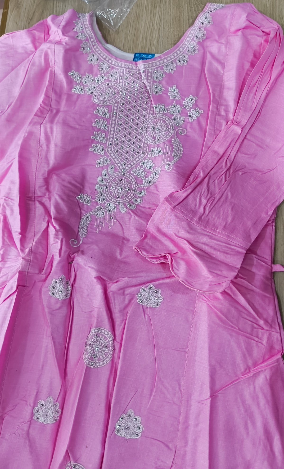 ఎంబ్రాయిడరీ పనితో గులాబీ రంగు కుర్తీ