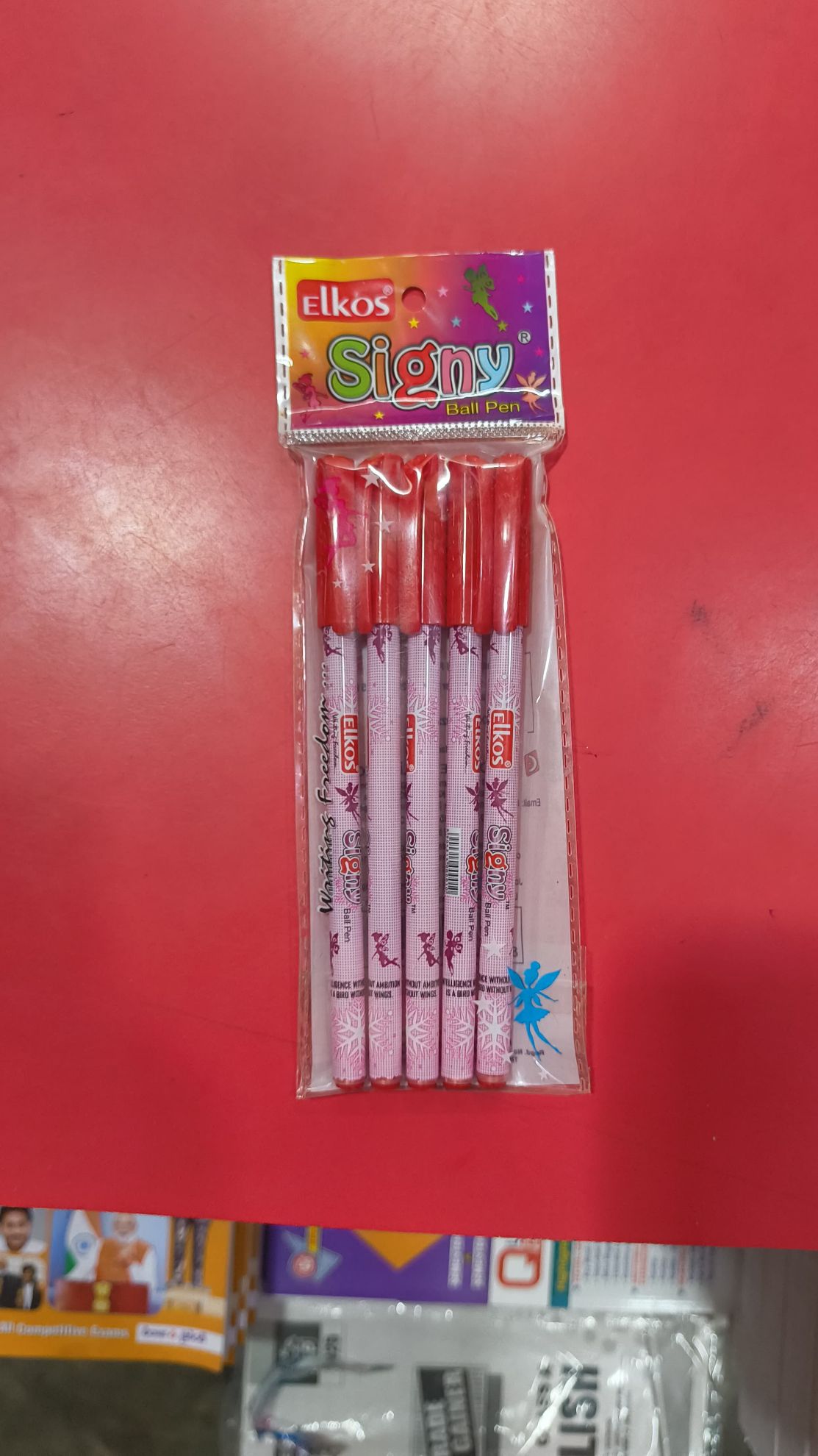 ఎల్కోస్ సిగ్నీ బాల్ పెన్నులు ఎరుపు రంగు-1 ప్యాక్ (5 ముక్కలు)