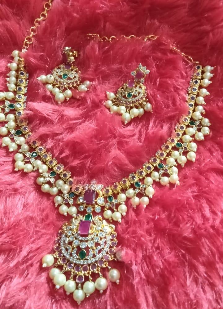 కుందన్ నెక్లెస్ మరియు చెవి రింగుల సెట్