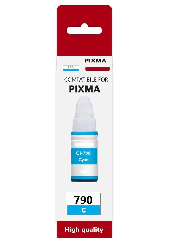 రంగు పేరు: సియాన్ఇన్క్లూడెడ్ ఐటమ్: 1 x ఇంక్ బాటిల్మోడల్ పేరు: PIXMA GI-790Cఇంక్ రకం: లిక్విడ్ ఇంక్యూనిట్: 1 ముక్కప్యాకేజింగ్ రకం: బాటిల్