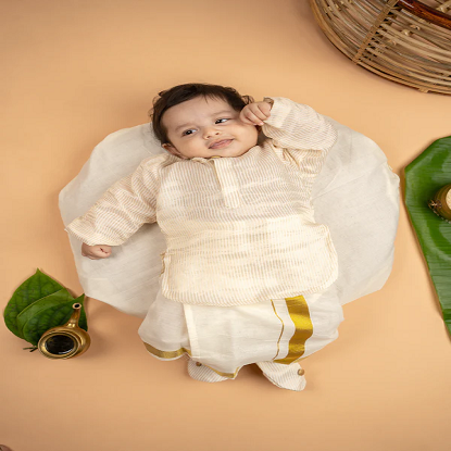 సాంప్రదాయ & పండుగ లుక్ - వేడుక యొక్క సాంస్కృతిక ప్రాముఖ్యతకు అనుగుణంగా సొగసైన నమూనాలు, ఎంబ్రాయిడరీ లేదా అలంకరణలతో రూపొందించబడింది.