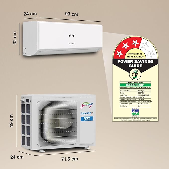 ఇండోర్ యూనిట్ (IDU): 93 x 32 x 24 సెం.మీ., బరువు – 11.2 కిలోలు