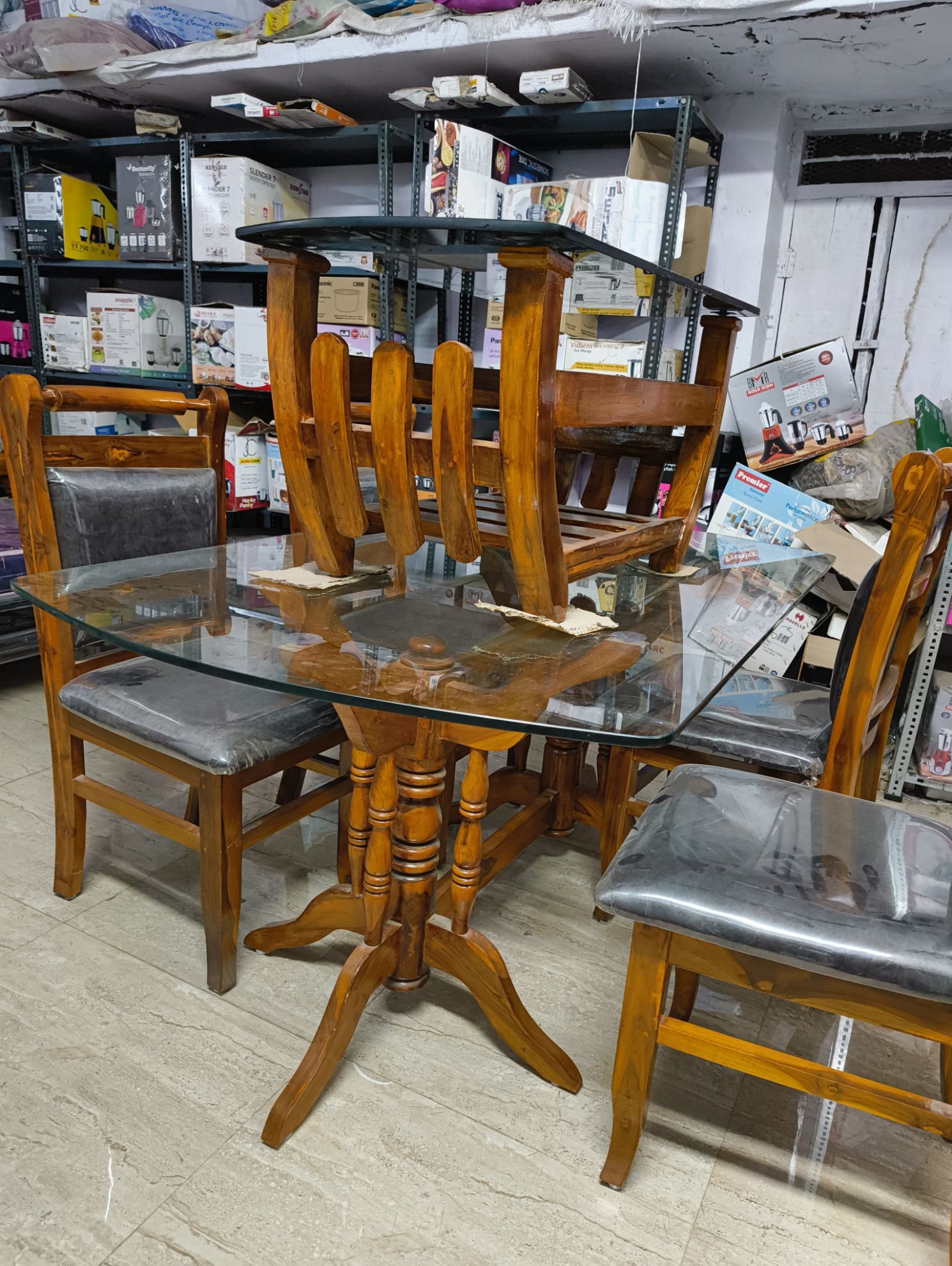 గ్లాస్ 4 సీటర్ చెక్క డైనింగ్ టేబుల్ సెట్