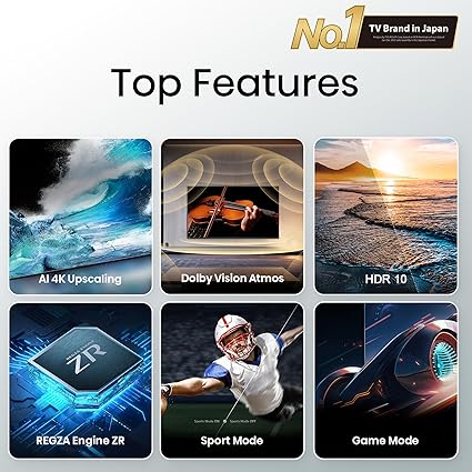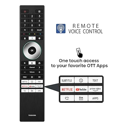 రిజల్యూషన్: 4K అల్ట్రా HD (3840 x 2160) | రిఫ్రెష్ రేట్: 60 హెర్ట్జ్కనెక్టివిటీ: సెట్ టాప్ బాక్స్ను కనెక్ట్ చేయడానికి 3 HDMI పోర్ట్లు (1HDMI పోర్ట్ eARC మద్దతు ఉంది) | హార్డ్ డ్రైవ్లు మరియు ఇతర USB పరికరాలను కనెక్ట్ చేయడానికి 2 USB పోర్ట్లు | అంతర్నిర్మిత WiFi | బ్లూటూత్ | ఈథర్నెట్ RJ45 | 1 ఇయర్ఫోన్ జాక్ | 1 ఆప్టికల్ డిజిటల్ ఆడియో అవుట్పుట్ (SPDIF) | 1 RF- రేడియో ఫ్రీక్వెన్సీ ఇన్పుట్ | 1 AV ఇన్పుట్సౌండ్: 24W ఆడియో అవుట్పుట్ | డాబ్లీ అట్మాస్ | ఆడియో ఈక్వలైజర్ | డాల్బీ డిజిటల్ | లిప్-సింక్ సర్దుబాటు | సౌండ్ మోడ్:స్టాండర్డ్, థియేటర్, స్పోర్ట్స్, మ్యూజిక్, స్పీచ్, లేట్ నైట్స్మార్ట్ టీవీ ఫీచర్లు: Google TV | Google అసిస్టెంట్ | వాయిస్ కమాండ్ | స్క్రీన్ మిర్రరింగ్: DLNA, Chromecast, Miracast, AirPlay | స్లీప్ టైమర్ | ఆన్/ఆఫ్ టైమర్ | మద్దతు ఉన్న యాప్లు: Netflix, YouTube, Prime Video, Hotstar, SonyLiv, Hungama, JioCinema, Zee5, Eros Nowడిస్ప్లే: 178 drgrees వైడ్ వ్యూయింగ్ యాంగిల్ | VRR | ALLM | MEMC | HDR 10 | HLG | డాల్బీ విజన్ | బహుళ పిక్చర్ మోడ్లకు మద్దతు ఉంది: డైనమిక్, స్టాండర్డ్, స్పోర్ట్స్, PC/గేమ్, ఎనర్జీ సేవింగ్, సినిమా, ఫిల్మ్మేకర్ మోడ్వారంటీ సమాచారం: కొనుగోలు తేదీ నుండి TOSHIBA అందించే ఉత్పత్తిపై 1 సంవత్సరం సమగ్ర వారంటీ