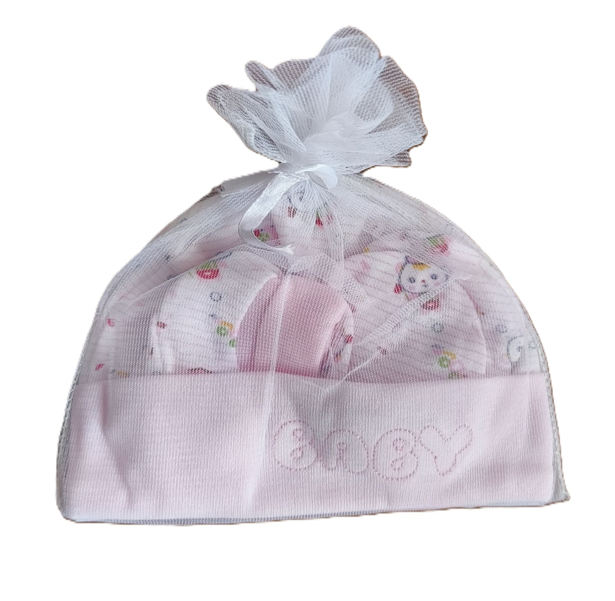 ఈ సెటులో బేబీ క్యాప్, బూటీలు మరియు మిట్టెన్స్ ఉన్నాయి — అబ్బాయిలకు మరియు అమ్మాయిలకు సరిపోయేలా రూపొందించబడింది.