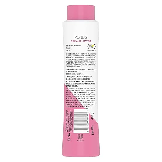 పింక్ లిల్లీతో నింపబడి ఉంది: పురుషులు & మహిళల కోసం ది పాండ్స్ పౌడర్ అనేది పింక్ లిల్లీ యొక్క తీపి మరియు మంత్రముగ్ధమైన సువాసనతో నింపబడిన ఒక విలాసవంతమైన టాల్కమ్ పౌడర్. ఈ టాల్కమ్ పౌడర్లోని పింక్ లిల్లీ యొక్క సువాసన దీర్ఘకాలం ఉంటుంది మరియు రిఫ్రెషింగ్ మరియు పునరుజ్జీవన అనుభవాన్ని అందిస్తుంది.మెస్మరైజింగ్ ఫ్రెష్నెస్: మహిళలు & పురుషుల కోసం మంత్రముగ్ధమైన పాండ్స్ బాడీ పౌడర్ దాని ఓదార్పు మరియు ప్రశాంతత లక్షణాలకు ప్రసిద్ధి చెందింది. దీని తీపి మరియు పూల టాల్క్ పౌడర్ సువాసన మీ చుట్టూ తాజాదనం యొక్క ప్రకాశాన్ని సృష్టిస్తుంది, మిమ్మల్ని ఉత్సాహపరుస్తుంది మరియు శక్తివంతం చేస్తుంది.శోషక స్వేదనం: పాండ్స్ టాల్కమ్ పౌడర్ వారి చర్మాన్ని తాజాగా ఉంచుతూ మృదువైన ఆకృతిని అందించే బాడీ పౌడర్ కోసం చూస్తున్న వారికి ఒక అద్భుతమైన ఎంపిక. ఈ టాల్కమ్ పౌడర్లోని మైక్రో టాల్క్ పౌడర్ మీ చర్మానికి మృదువైన మరియు మృదువైన ఆకృతిని అందించడంలో సహాయపడుతుంది.మీ ముఖాన్ని తక్షణమే ప్రకాశవంతంగా చేస్తుంది: మహిళలు & పురుషుల కోసం ఈ టాల్కమ్ పౌడర్ మీ చర్మ ఛాయను సమం చేయడానికి సహాయపడుతుంది, ఇది ప్రకాశవంతంగా మరియు మరింత సమానంగా కనిపిస్తుంది. దీని సన్నని పొడి ఆకృతి దీన్ని పూయడం సులభతరం చేస్తుంది మరియు మీ చర్మంలోకి సజావుగా కలిసిపోతుంది, తెల్లటి అవశేషాలు లేదా సుద్ద రూపాన్ని వదిలివేయదు.