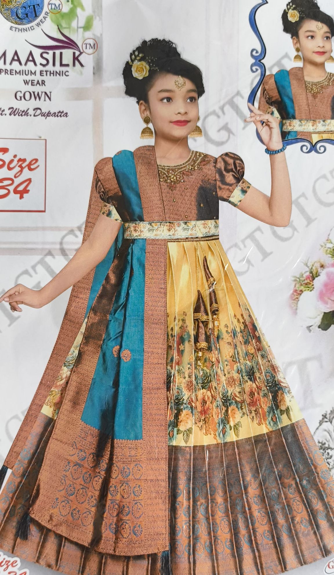 ఈ అందమైన దుస్తి ప్రత్యేకంగా పండుగలు, పెళ్లిళ్లు మరియు సాంస్కృతిక వేడుకల కోసం రూపొందించబడింది. ఇది సంప్రదాయ శైలిని పిల్లలకు అనువుగా ఉండేలా మిక్స్ చేస్తుంది.