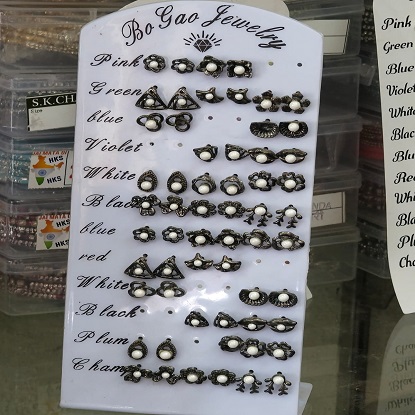ఇవి బో గావో జ్యువెలరీ నుండి ఆక్సిడైజ్ చేయబడిన సిల్వర్-టోన్ పెర్ల్ స్టడ్ చెవిపోగులు. ప్రతి స్టడ్ పురాతన-శైలి లోహంతో సంక్లిష్టమైన డిజైన్లు మరియు ఎంబెడెడ్ తెల్లటి ముత్యాల కేంద్రాలతో రూపొందించబడింది. డిజైన్లు పూల, రేఖాగణిత, షెల్, డ్రాప్, క్యాట్-ఫేస్ మరియు ఫ్యాన్ ఆకారాల మధ్య మారుతూ ఉంటాయి, ఇవి రోజువారీ దుస్తులు, సాంప్రదాయ దుస్తులు మరియు పండుగ సందర్భాలలో బహుముఖంగా ఉంటాయి.