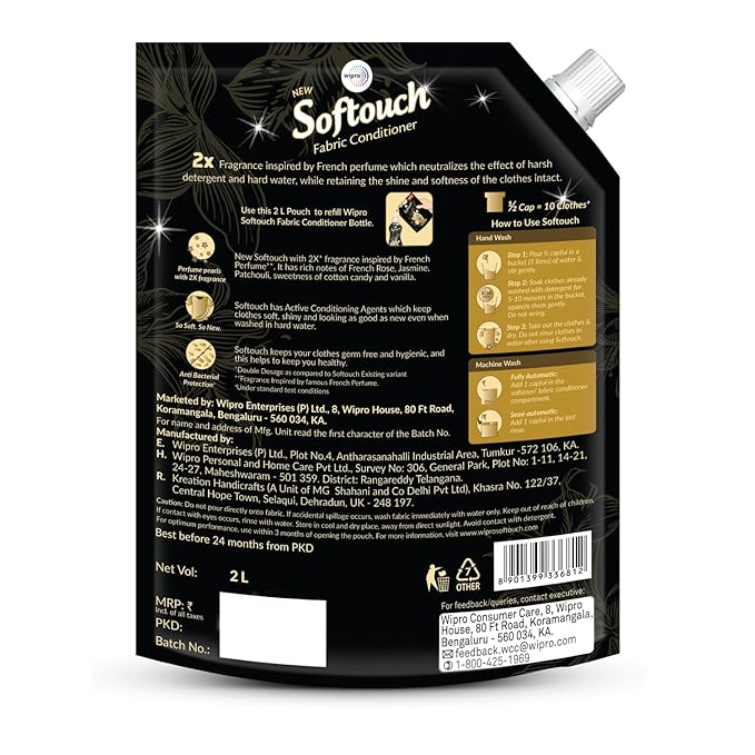 ఫ్రెంచ్ పరిమళాల స్ఫురణ:2 రెట్లు ఫ్రెంచ్ పరిమళం – అందులో రోజ్, జాస్మిన్, పాచౌలి, వెనిలా గంధాల కలయికతో బట్టలకు చక్కటి సువాసనను అందిస్తుంది.