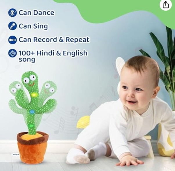 ఈ అంశం గురించి🌵 ఇంటరాక్టివ్ టాకింగ్ కాక్టస్ టాయ్: ప్రసంగాన్ని అనుకరిస్తుంది మరియు ఫన్నీ స్వరంలో పదాలను పునరావృతం చేస్తుంది, ఆట సమయాన్ని వినోదభరితంగా చేస్తుంది.🎶 సంగీతం & నృత్య లక్షణాలు: ఉల్లాసమైన పాటలు మరియు నృత్యాలను తాళానికి అనుగుణంగా ప్లే చేస్తుంది, పిల్లలు మరియు పెద్దలకు ఆనందాన్ని ఇస్తుంది.💡 LED లైట్-అప్ డిస్ప్లే: రంగురంగుల LED లైట్లతో మెరుస్తుంది, ఆహ్లాదకరమైన మరియు ఆకర్షణీయమైన వాతావరణాన్ని సృష్టిస్తుంది.🧸 మృదువైన & సురక్షితమైన పదార్థం: ప్రీమియం ప్లష్ ఫాబ్రిక్ మరియు విషరహిత పదార్థాలతో తయారు చేయబడింది, పిల్లలకు సరైనది.🔋 బ్యాటరీతో పనిచేసేది & మన్నికైనది: గంటల తరబడి సరదాగా మరియు నవ్వు కోసం [సంఖ్య/రకం] బ్యాటరీలు (చేర్చబడలేదు) అవసరం.