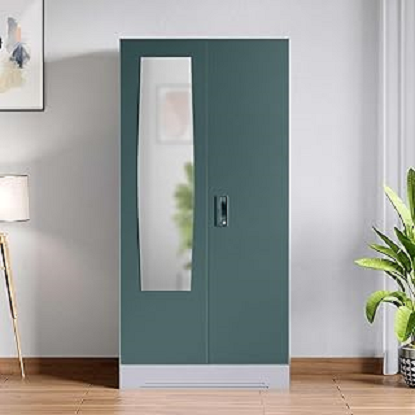 మెటల్ వార్డ్‌రోబ్ | లాకింగ్ సిస్టమ్‌తో కూడిన 2 డోర్ల పెద్ద అల్మిరా కప్‌బోర్డ్ | (పౌడర్ కోటెడ్ - బ్రౌన్ 78 X 36 X 19 అంగుళాలు)