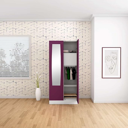 మెటల్ వార్డ్‌రోబ్ | లాకింగ్ సిస్టమ్‌తో కూడిన 2 డోర్ల పెద్ద అల్మిరా కప్‌బోర్డ్ | (పౌడర్ కోటెడ్ బ్లూ 78 X 36 X 19 అంగుళాలు)