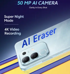 అద్భుతమైన స్పష్టత మరియు ఖచ్చితత్వంతో ఫోటోలు తీయండి – T4x 50MP AI కెమెరా తో. AI Erase, AI Photo Enhance, AI Documents వంటి ఫీచర్లతో AI ప్రపంచాన్ని అనుభవించండి.