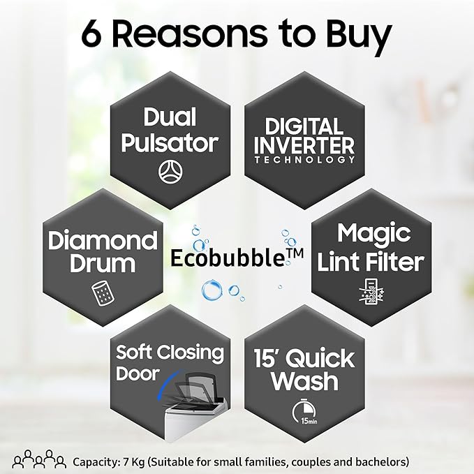 🔹 పూర్తి ఆటోమేటిక్ టాప్ లోడ్ వాషింగ్ మెషీన్ – ఈకోబబుల్ టెక్నాలజీతోధరల పరంగా అనుకూలంగా ఉండే ఉత్తమ వాష్ నాణ్యతతో, వాడటానికి సులభమైనది.