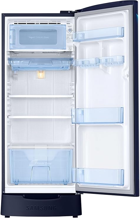 డైరెక్ట్ కూల్ రిఫ్రిజిరేటర్: ఆధునిక మిడ్నైట్ బ్లోసమ్ బ్లూ నమూనాతో స్టైలిష్ సింగిల్ డోర్ రిఫ్రిజిరేటర్. ఎక్కువ కాలం ఉండే శక్తివంతమైన శీతలీకరణను ఆస్వాదించండిసామర్థ్యం 183 లీటర్లు: 2 నుండి 3 మంది సభ్యులు ఉన్న కుటుంబాలకు అనుకూలంశక్తి రేటింగ్ : 3 స్టార్ ఎనర్జీ ఎఫిషియెన్సీతయారీదారు వారంటీ : ఈ ఉత్పత్తి 1 సంవత్సరం సమగ్ర వారంటీ మరియు డిజిటల్ ఇన్వర్టర్ కంప్రెసర్పై 20 సంవత్సరాల వారంటీతో వస్తుందిడిజిటల్ ఇన్వర్టర్ కంప్రెసర్ 50% తక్కువ శక్తిని వినియోగిస్తూ ఎక్కువ శక్తి సామర్థ్యం, తక్కువ శబ్దం మరియు దీర్ఘకాలిక పనితీరును అందిస్తుంది, 20 సంవత్సరాల వారంటీతో బ్యాకప్ చేయబడింది