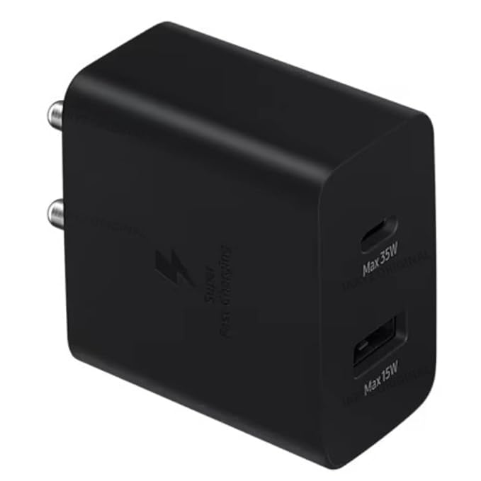 35W పవర్ డ్యూయో ఛార్జర్ అడాప్టర్, టైప్ C మరియు టైప్ A సూపర్ ఫాస్ట్ చాగ్రినింగ్ Samsung S23/S23 ప్లస్, S23 అల్ట్రా, S22/S22 ప్లస్, S21 Fe 5G, Z ఫోల్డ్5,4, Z ఫ్లిప్5,4,3, బ్లాక్ - 35 వాట్స్ తో అనుకూలమైనది పాత ధర: ₹1,999.00