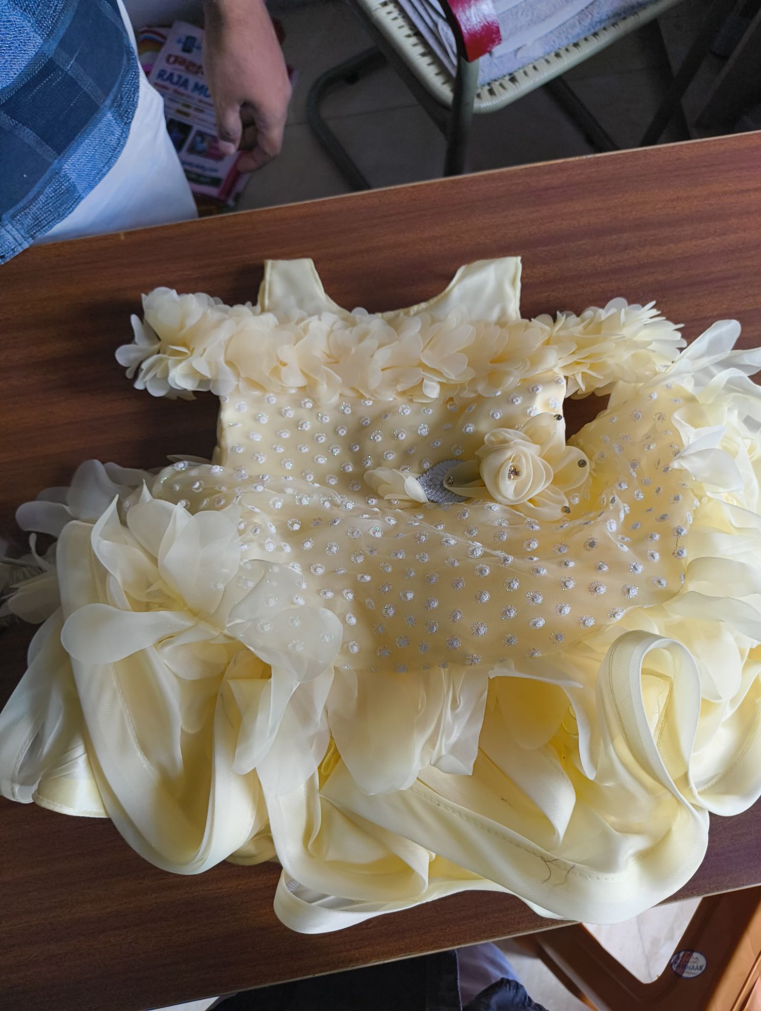 Product Description:This adorable aqua blue frock is perfect for little girls aged 1 to 2 years. It features delicate sequin embroidery on a soft net fabric, offering a charming and festive look. The sleeveless design and flared silhouette add comfort and elegance, making it ideal for birthdays, parties, or special occasions.