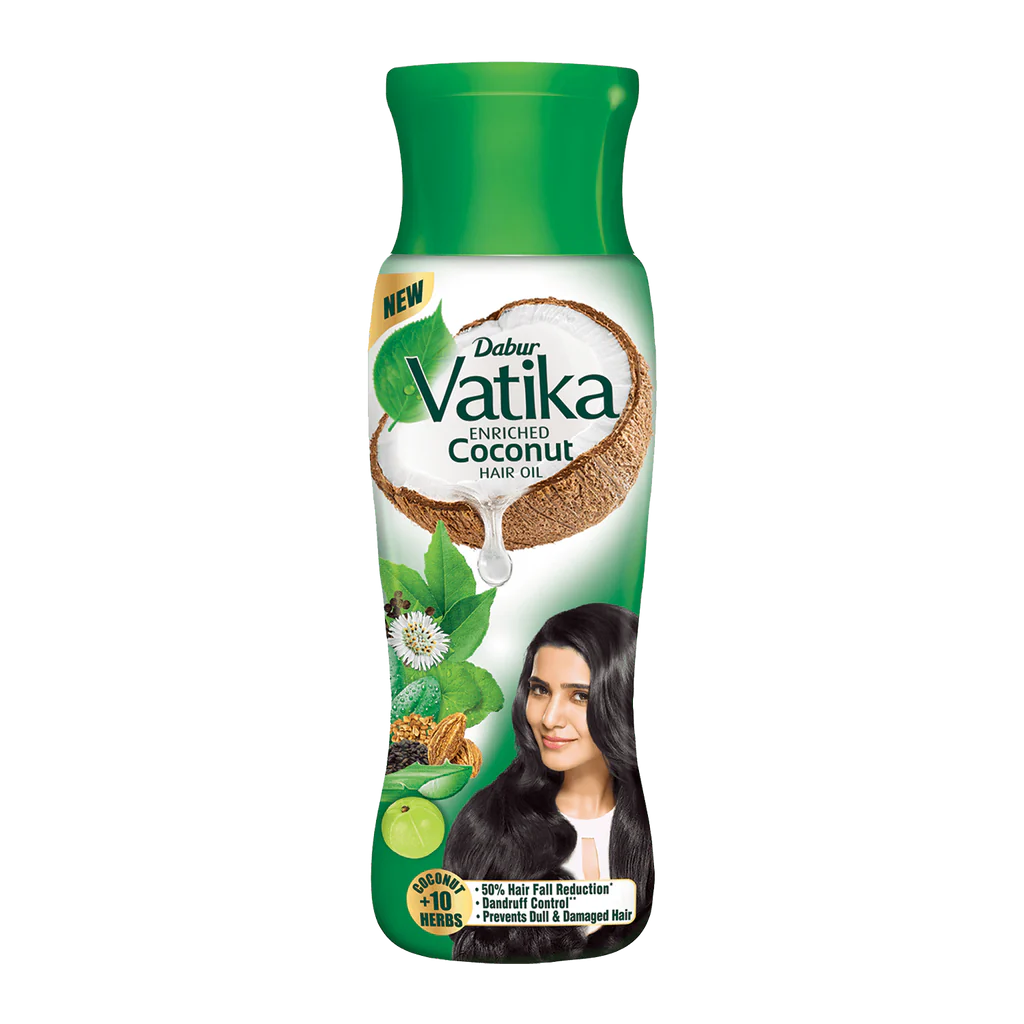 Are you experiencing hair problems like hair fall, dandruff or dull & damaged hair? It's time to switch to New Dabur Vatika Enriched Coconut Hair Oil. It has the goodness of 100% pure coconut oil along with 10 selected ingredients with proven hair benefits in Ayurveda. Each ingredient has a unique benefit – 1. Amla: Helps strengthen hair roots and make hair stronger 2. Curry Leaves: Boost’s hair growth 3. Aloe Vera: Helps condition hair to make them softer 4. Henna: Helps impart color to hair & useful in dandruff control 5. Bhringraj: Helps reduce hair fall and promotes new hair growth 6. Methi seeds: Helps control dandruff 7. Brahmi: Good for scalp health 8. Black Pepper: Helps promote hair growth 9. Kalonji: Helps control hair fall, and 10. Triphala: Makes hair stronger & helps controls dandruff. Vatika Hair Oil penetrates deeper into hair & scalp to give complete nourishment. It also helps control dandruff and manages dull & damaged hair. Try Vatika – For Stronger, Thicker, Beautiful Hair!