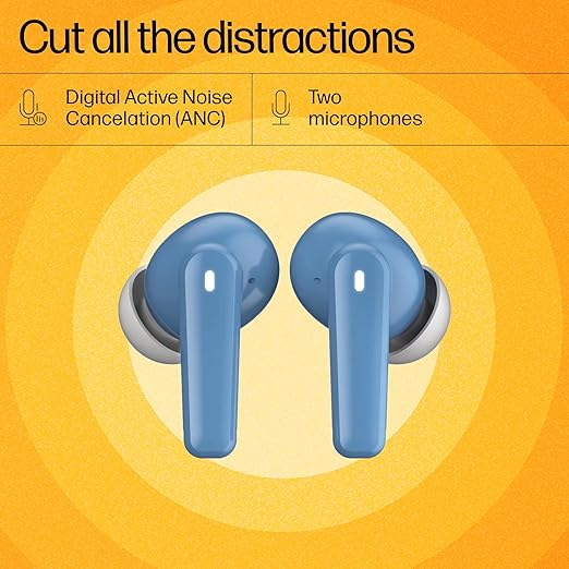HP H150 ట్రూ వైర్లెస్ ఇయర్బడ్స్, బ్లూటూత్ కనెక్టివిటీ, డిజిటల్ యాక్టివ్ నాయిస్ క్యాన్సిలేషన్, 7 గంటల ప్లేటైమ్, ఫింగర్ప్రింట్ టచ్, IPX3 వాటర్-రెసిస్టెంట్ డిజైన్, 1-సంవత్సరం పరిమిత వారంటీ, బ్లూ, A20QBAA