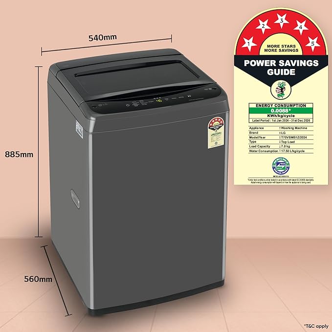 నీటి వినియోగం: 17.5 లీటర్లు/కిలో/సైకిల్(వివరాలకు BEE లేబుల్ చూడండి)