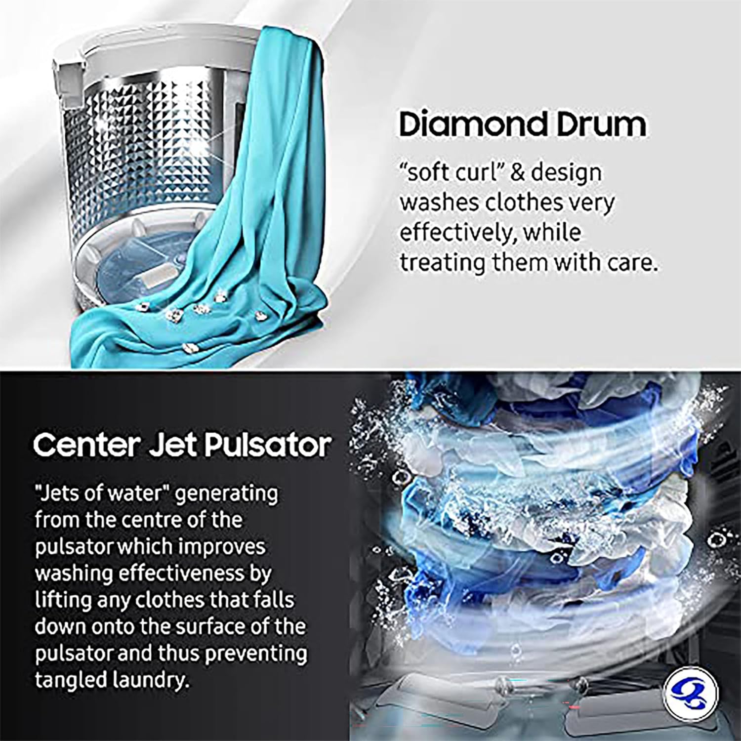 డ్రమ్ రకం: డైమండ్ డ్రమ్, సెంటర్ జెట్ పుల్సేటర్