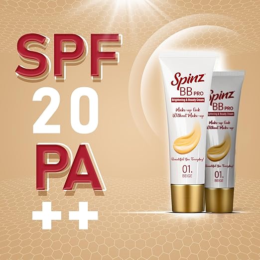 SPF 20 PA++:Spinz BB Pro డైలీ క్రీమ్ UBA మరియు UVB కిరణాల నుంచి రక్షణను కలిగిస్తుంది.