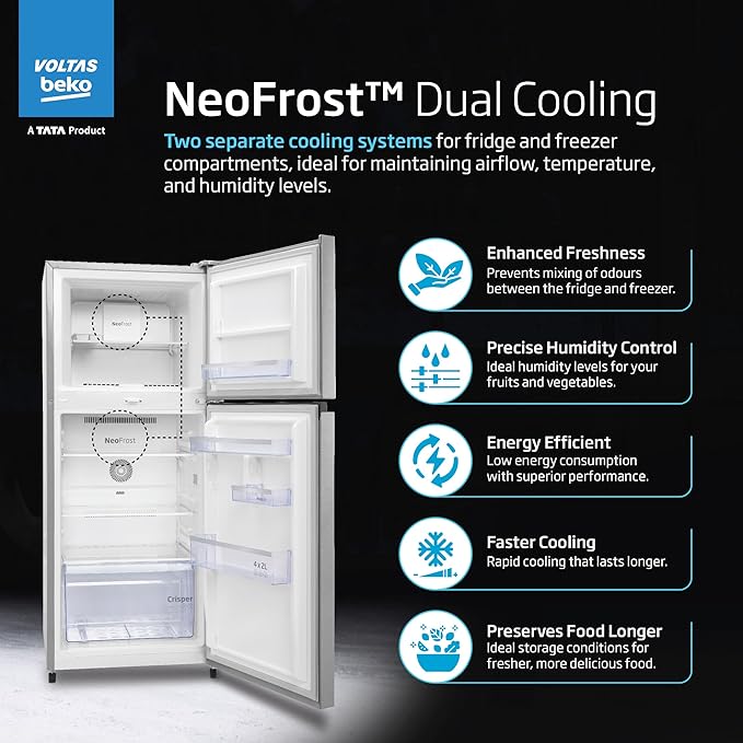 నియో ఫ్రాస్ట్ డ్యూయల్ కూలింగ్సర్దుబాటు చేయగల టఫ్డ్ గ్లాస్ షెల్వ్లుపెద్ద బాటిల్ స్టోరేజ్క్రిస్పర్తో కూడిన పెద్ద కూరగాయల బుట్టస్టెబిలైజర్ ఉచిత ఆపరేషన్